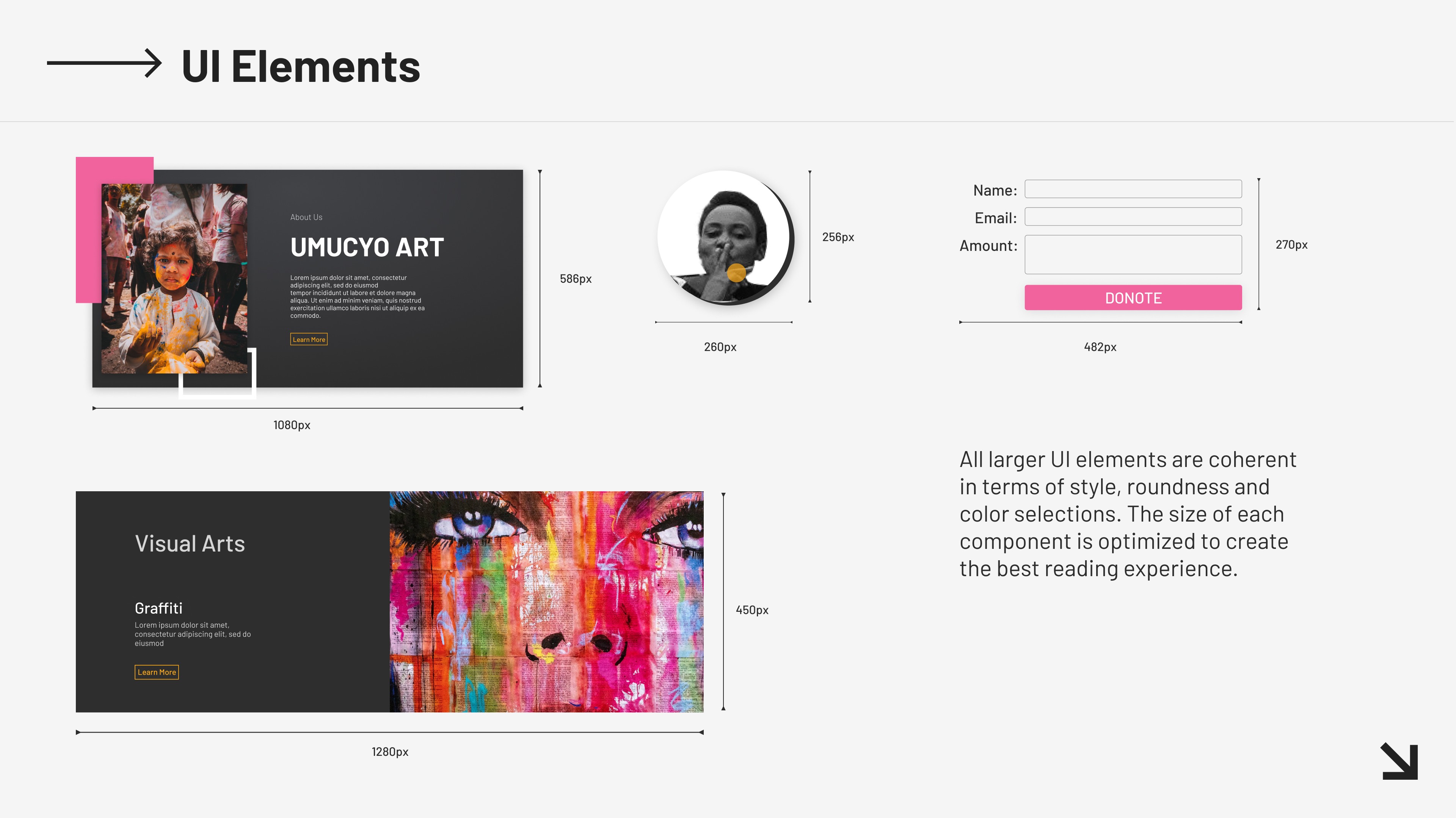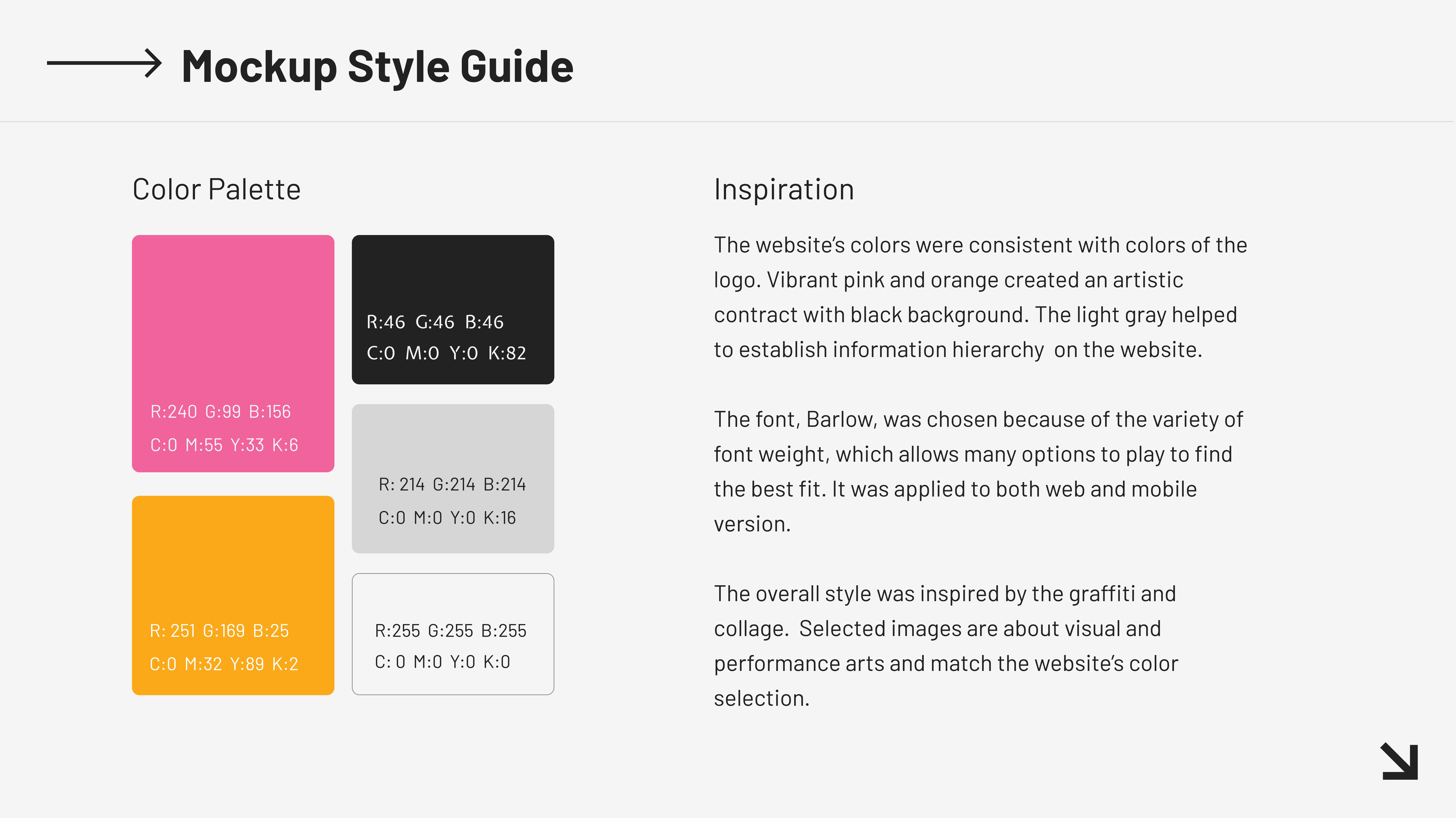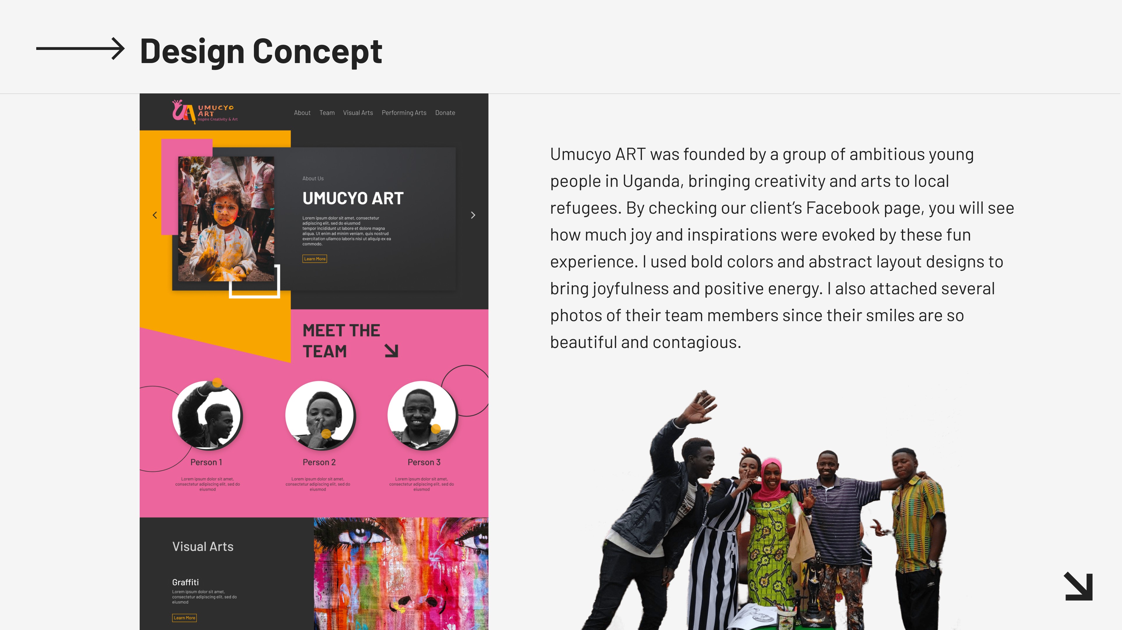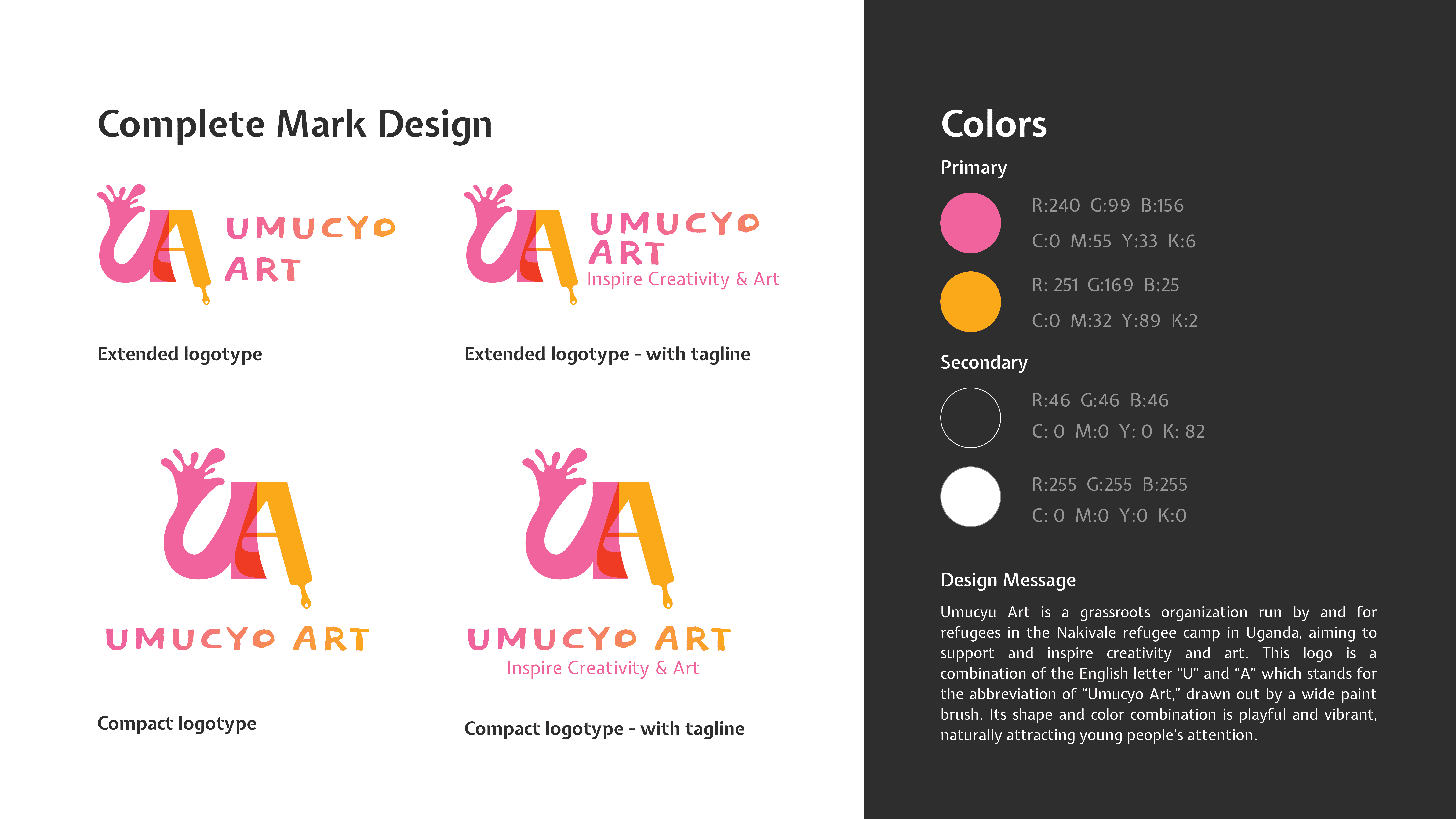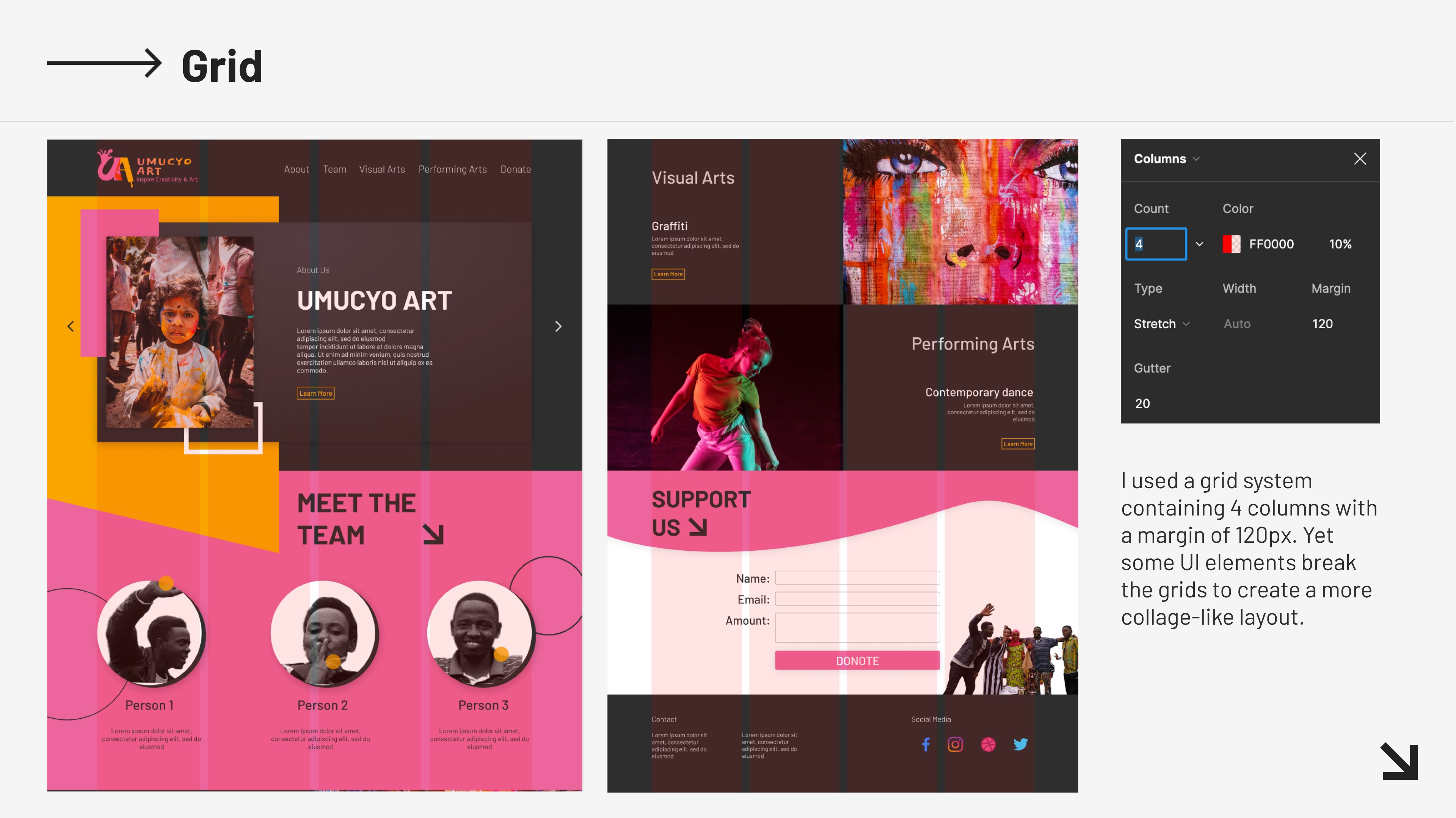 In this project, I designed a collection of branding works for this organization including logos, mobile prototypes and web prototypes. I utilized a vibrant color combination to express their passions for art.